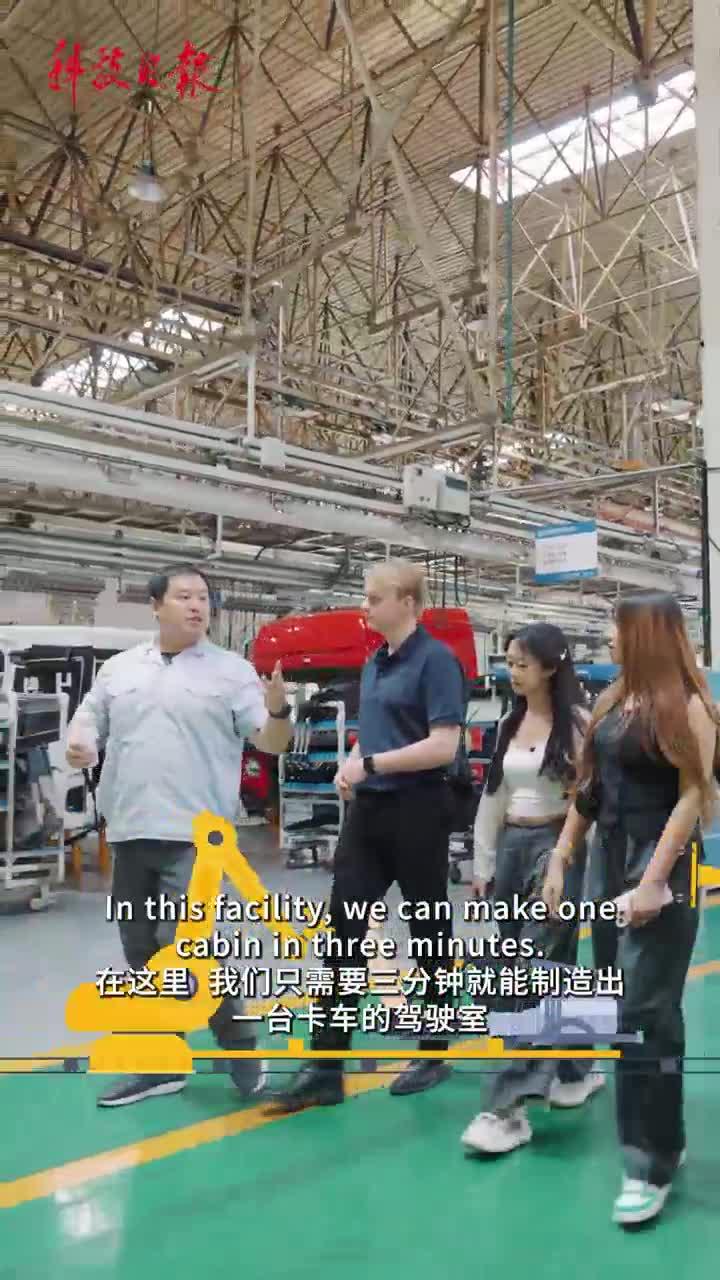 Recently, five international students and entrepreneurs visited Shaanxi Automobile in Xi'an city, northwest China, witnessing how intelligent manufacturing enables the production of a truck cab in just three minutes.